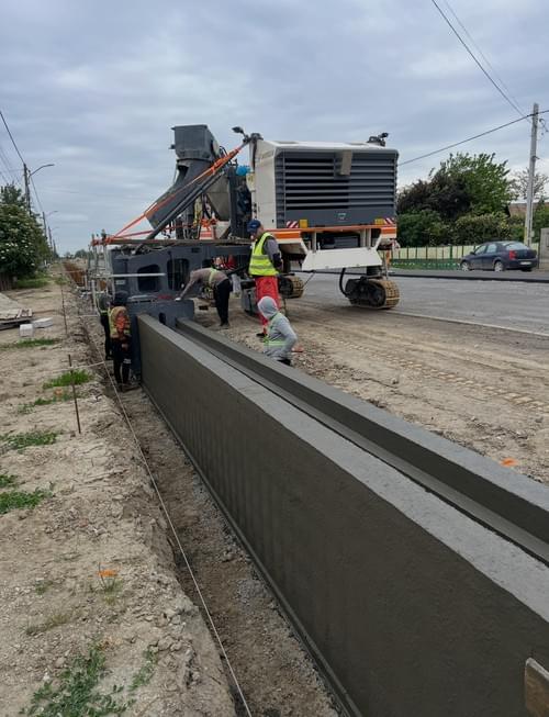 Cu ajutorul finisorului Wirtgen SP 25, oferim servicii de calitate superioară pentru execuția de santuri betonate și rigole carosabile, rigole de acostament, acostamente beronate, ziduri de sprijin.