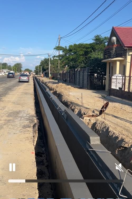 Un proiect dedicat construcției de rigole carosabile pentru un drum principal, demonstrând impactul pozitiv asupra traficului și drenajului.