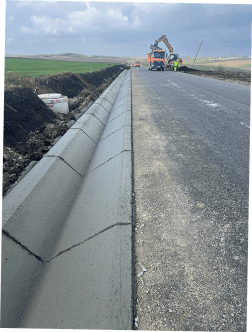 Cu ajutorul finisorului Wirtgen SP 25, oferim servicii de calitate superioară pentru execuția de santuri betonate și rigole carosabile, rigole de acostament, acostamente beronate, ziduri de sprijin.